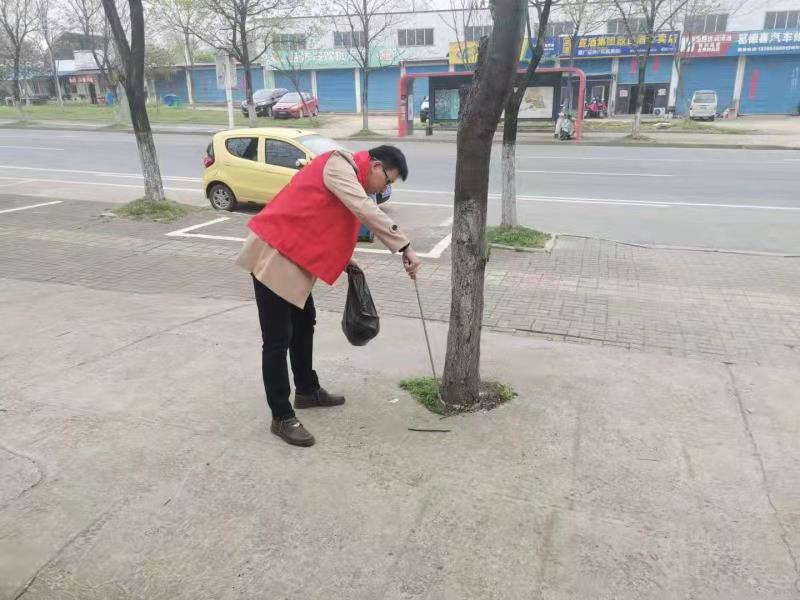 志愿者們來到轄區海棠路段手持鐵夾和垃圾袋,對道路沿線兩旁人行道、綠化帶里的生活垃圾、衛生死角逐一清理。