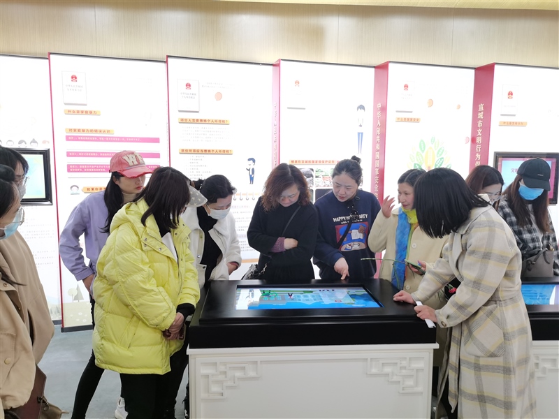 隨后,“娘子軍”們前往宣城宛陵湖法治文化館參觀。大家認真聆聽講解員的講解,依次參觀了“尊法學法”“守法用法”“普法路上”三個展區,現場學習了法治文化,觀看了宣城市普法宣傳片和法治故事短片,體驗了法治模擬場景。通過參觀學習,進一步增強了她們尊法學法守法用法意識,將法治觀念融入今后工作和生活中,做到廉潔從業,依法履職。