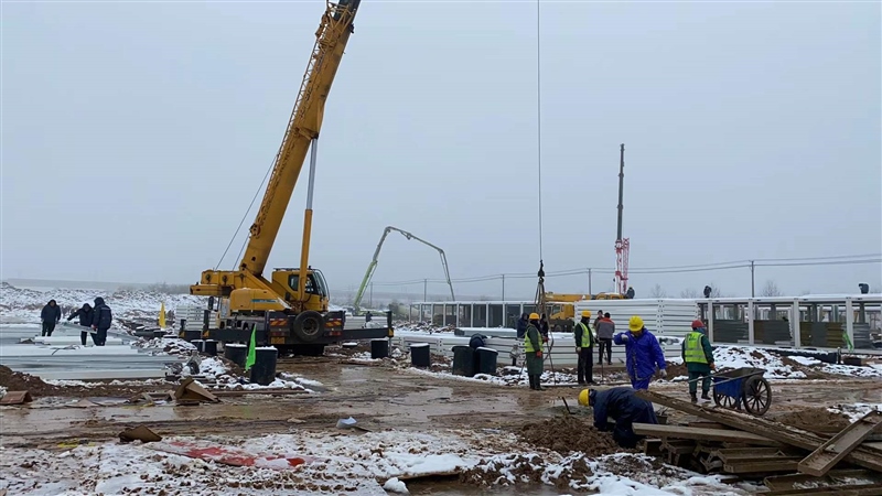 2月8日,新年的第一場暴雪終于遏制住怒吼,各搶建班組全力加速推進準備區折疊房和隔離區打包房的安裝,室內淋浴房、水電及室外電力電纜井砌筑等多個作業面施工全面展開,現場掀起節后施工新一輪大干熱潮。