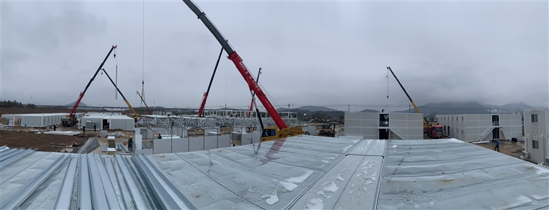 隔離點項目建設離完工僅剩十余天,自1月21日開工以來,各參建方努力調配一切可用的人力、物資,在全力保障項目建設的同時,努力節約采購成本。今日,施工現場近300人作業,變壓器已安裝完成,打包房、板房、折疊房及水電設備等安裝進展迅速。