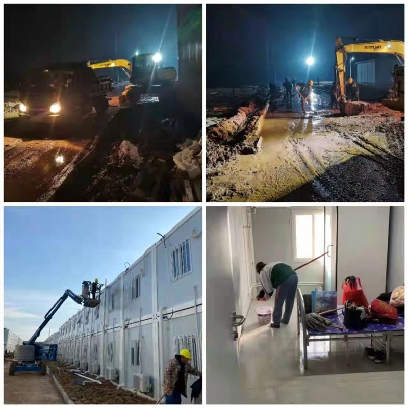 截至2月20日,準備區折疊房、緩沖區活動板房、隔離區打包房、污水處理點用房已全面安裝完成,室內水電、家具、電器安裝近尾聲,室外附屬工程進入最后修補,隔離點項目保潔工作正在加班加點進行。盡管有無盡的疲憊,但各參建方都毫無怨言,鏟泥漿、沖洗道路,清理垃圾……這些看似平常的工作,在這一刻顯得尤為神圣且自豪。