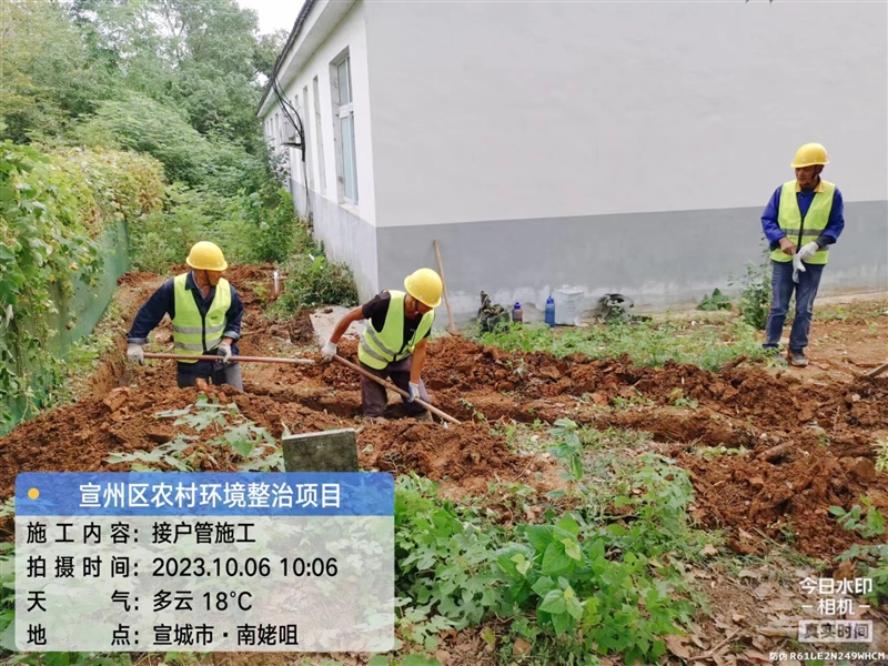 在宣州區農村環境整治項目上,為了保障居民正常生活,施工隊伍一刻不敢懈怠的在居民家里施工污水接戶工作。