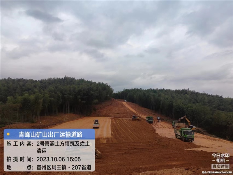 在青峰山礦山出廠運輸道路項目上,雨后天氣為了保障項目質量,現場機械正在對爛土進行清運。