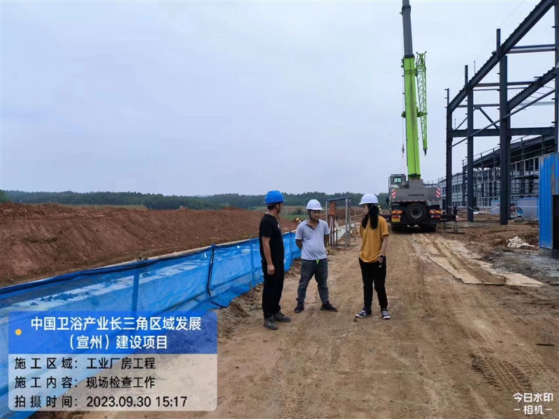 在中國衛浴產業長三角區域發展(發展)建設項目上,為了保障廠房投產使用,現場正在對4號廠房吊裝作業。