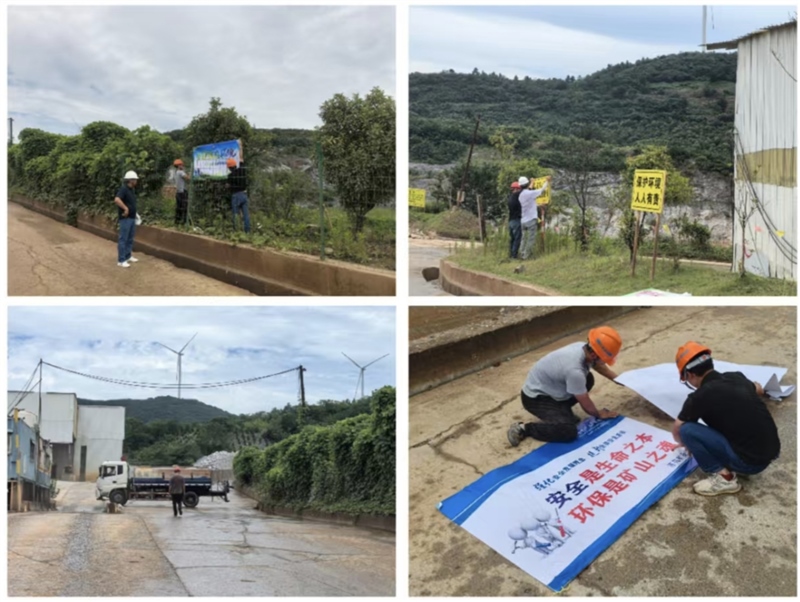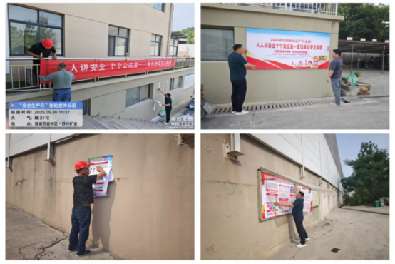 二是宣傳引導,營造濃厚氛圍。5月30日下午,蘇興礦業及云南建投駐礦項目部充分利用宣傳欄、橫幅、海報等形式營造活動氛圍,圍繞“人人講安全,個個會應急—查找身邊安全隱患”的活動主題,制作專題宣傳橫幅2條、安全宣傳海報35張,張貼于入礦道路、磅房、一破喂料口、職工食堂等醒目位置。